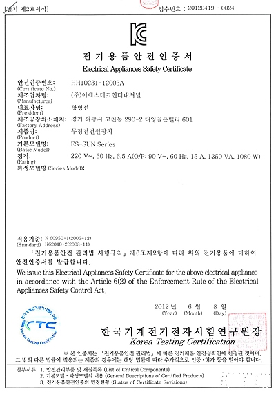 Electrical Appliances Safety Certificate > Certificate
